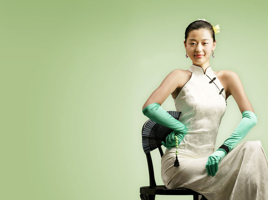 全智贤露肩旗袍旧照 玲珑身段古典大方
