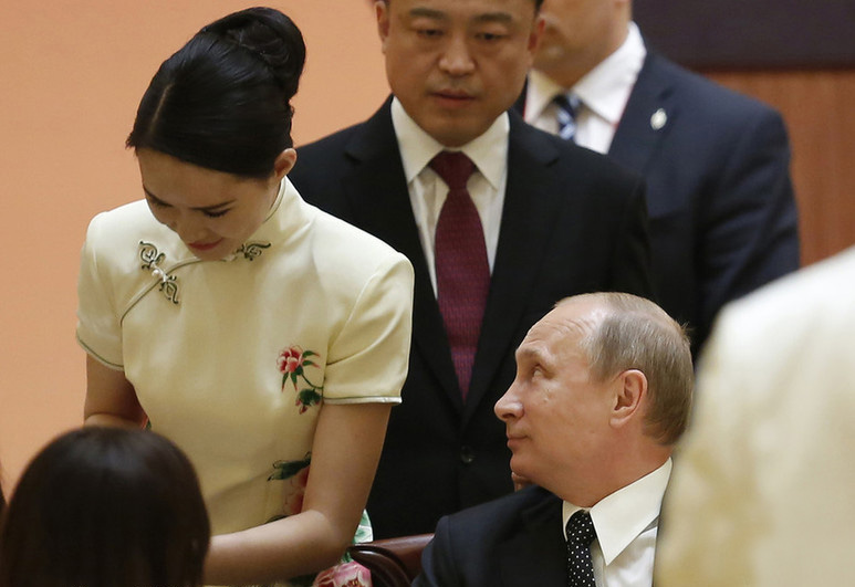 普京出席欢迎晚宴 被旗袍东方美女礼仪吸引