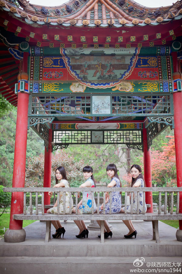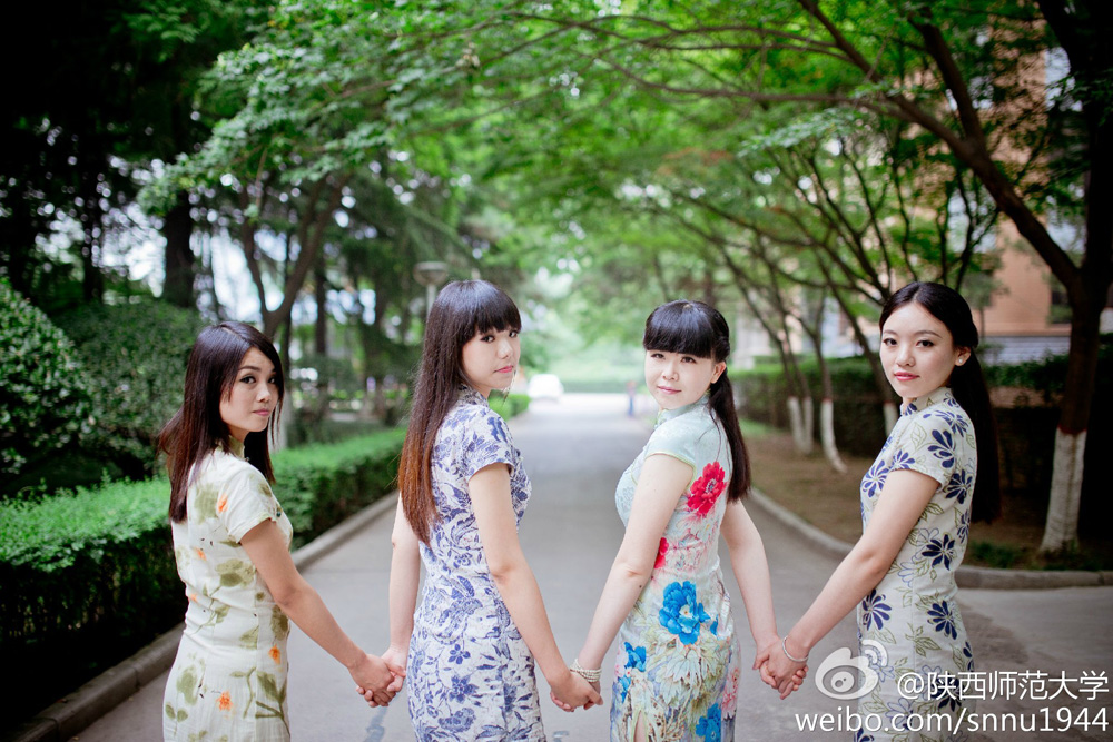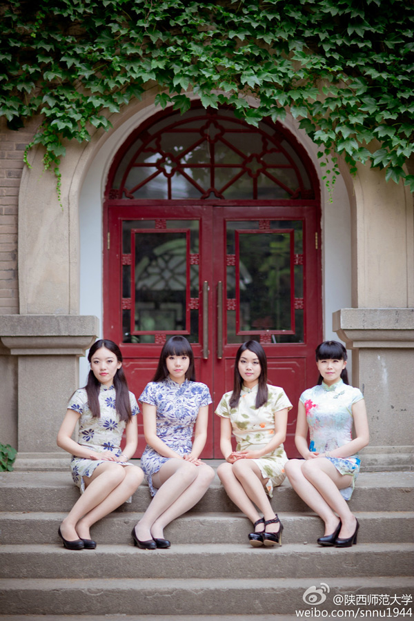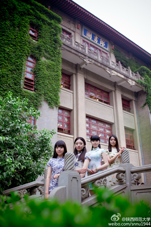 青春,是明亮而不刺眼的光,青春,是冲着这个世界绽放最自信的面庞,同窗谊重,母校难忘, 一组陕西师范大学女生在老图书馆旁的毕业照,婉约旗袍风里,有这个写满离别故事的夏天,最美的珍藏~