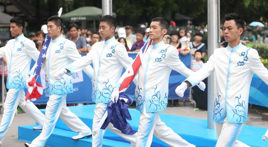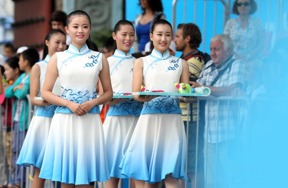 南京青奥会颁奖礼仪身着“青花瓷”礼服亮相