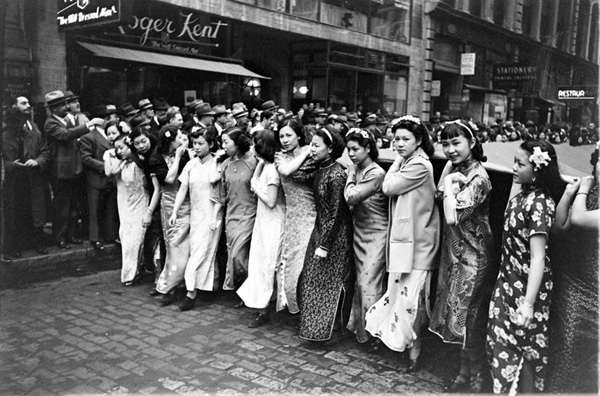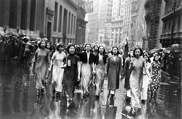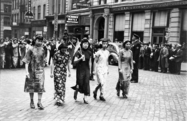 1938年华侨美女总动员募捐抗日,用拉大旗募捐的方式,郭沫若写的书里也提到过。以下是1938年在美国纽约,由华侨组织进行的街头步行募捐活动,非常珍贵的一组照片。