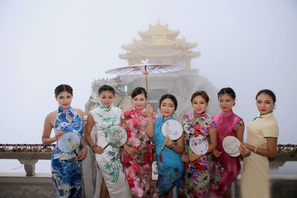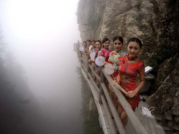 美女2000米伏牛山巅秀旗袍 顾盼生姿曼妙玲珑
