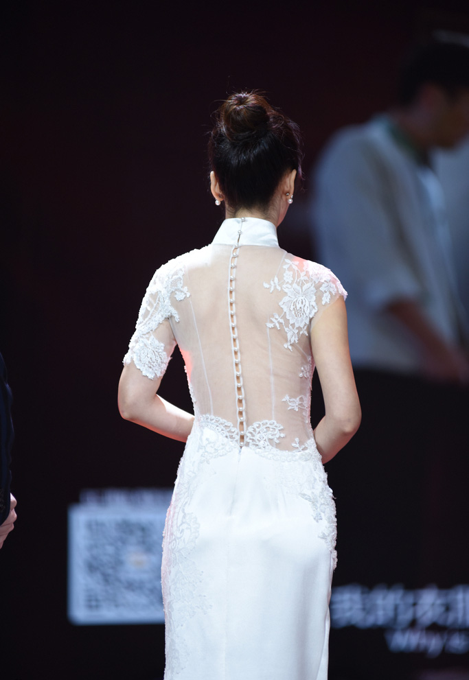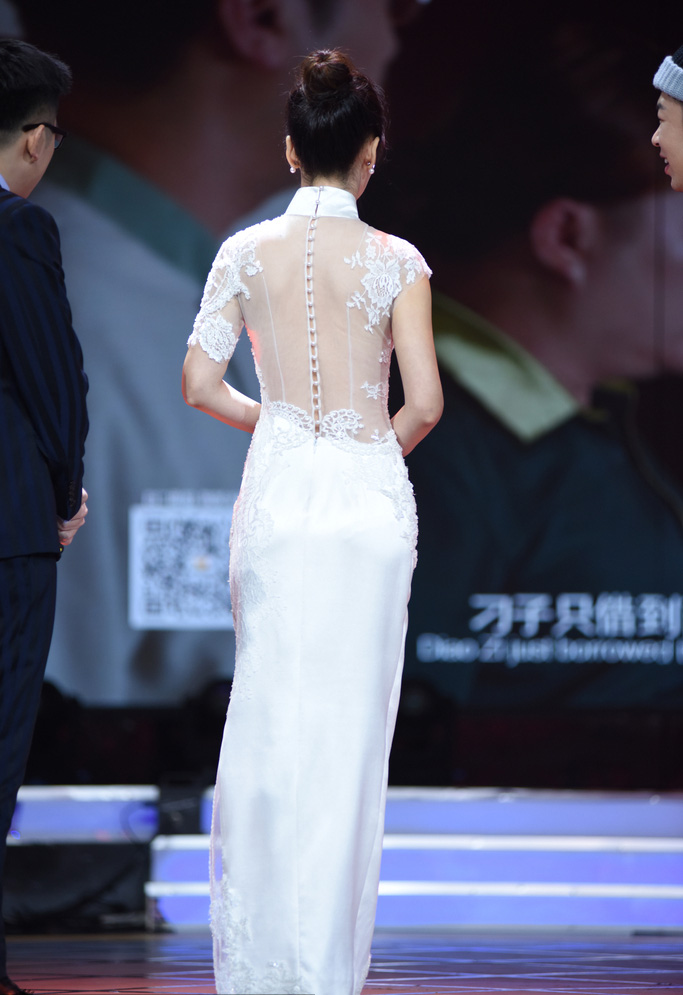 柳岩性感纯白旗袍亮相 被调侃“露背不露胸”