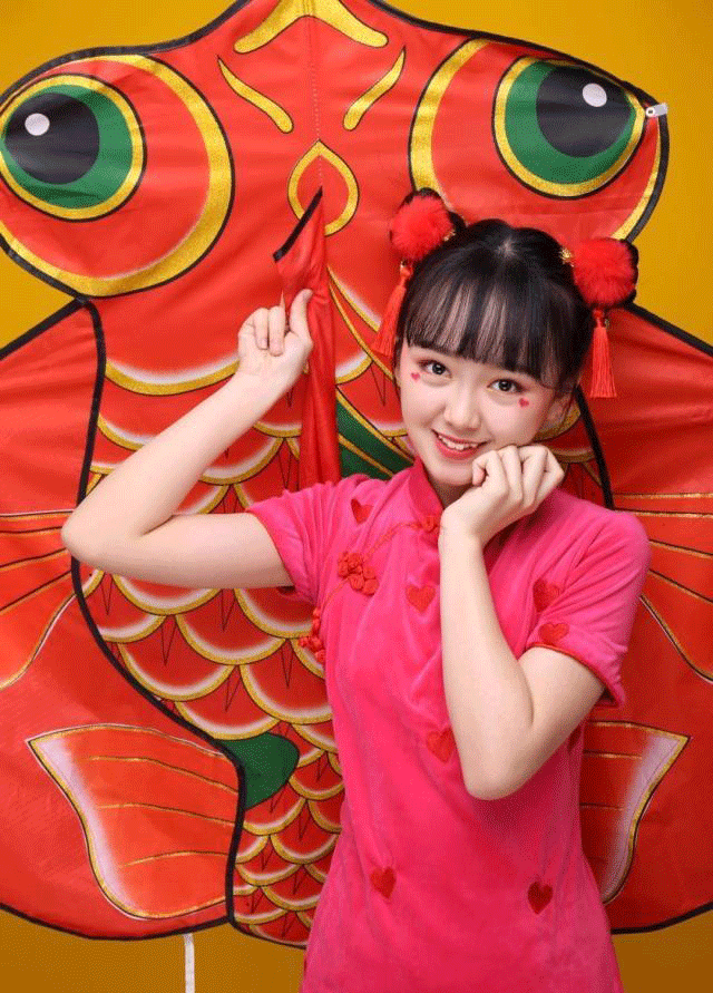小戏骨钟宝儿身穿红色旗袍,双丸子头萌到不行