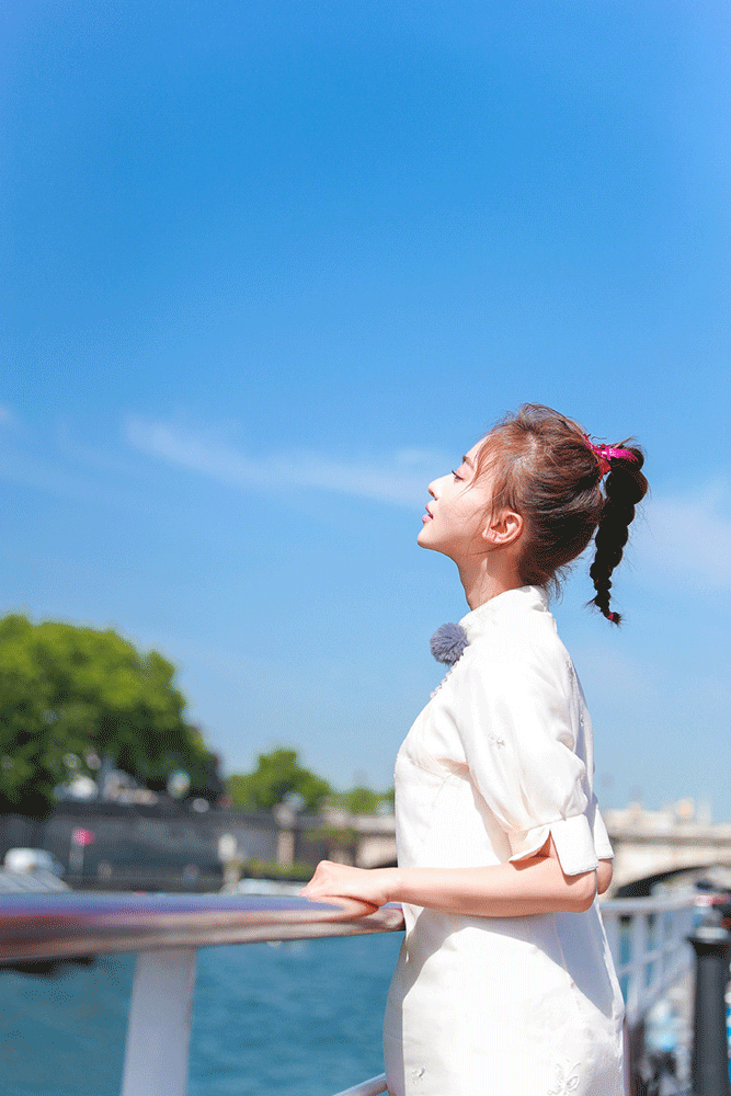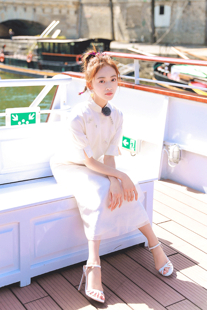 吴谨言惊艳巴黎街头,穿改良旗袍清纯娇俏