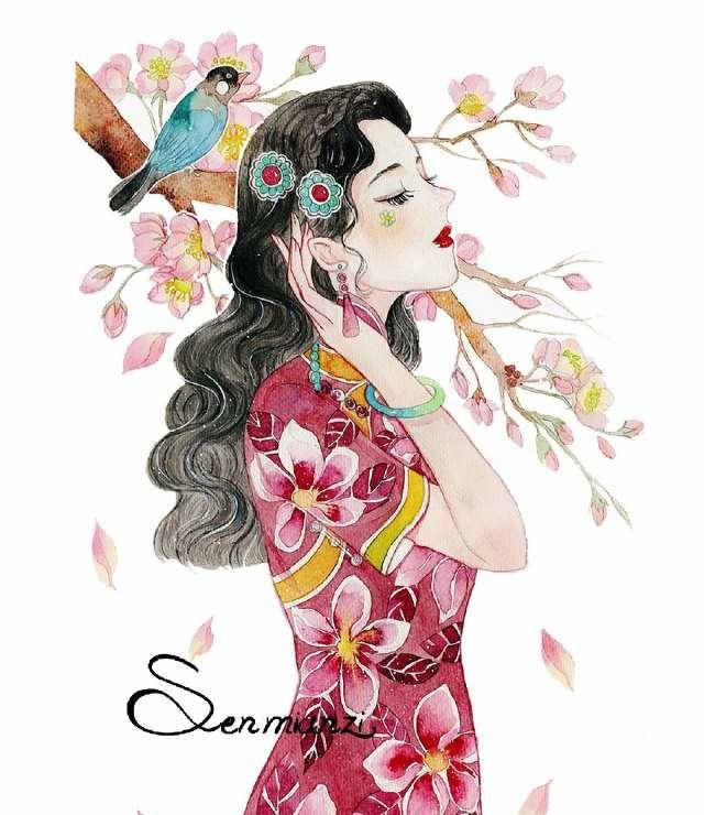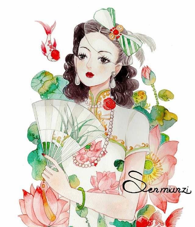 水彩画:有气质的你,穿上旗袍装会更美,人见人爱!敢挑战吗?